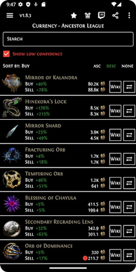 PoE Currency is a replica version of Poe Ninja, utilize for mobile users