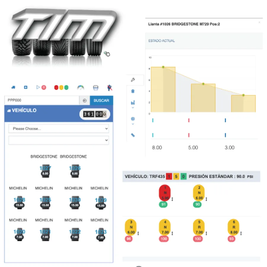 Controla, mide y administra los neumáticos de la flota. Cuenta con dispositivos de medición y captura de información de última tecnología