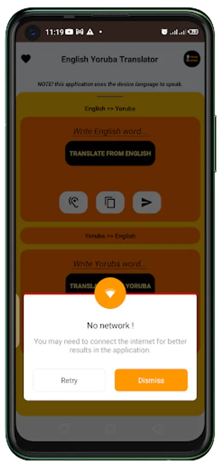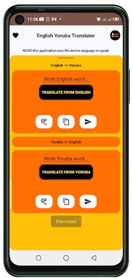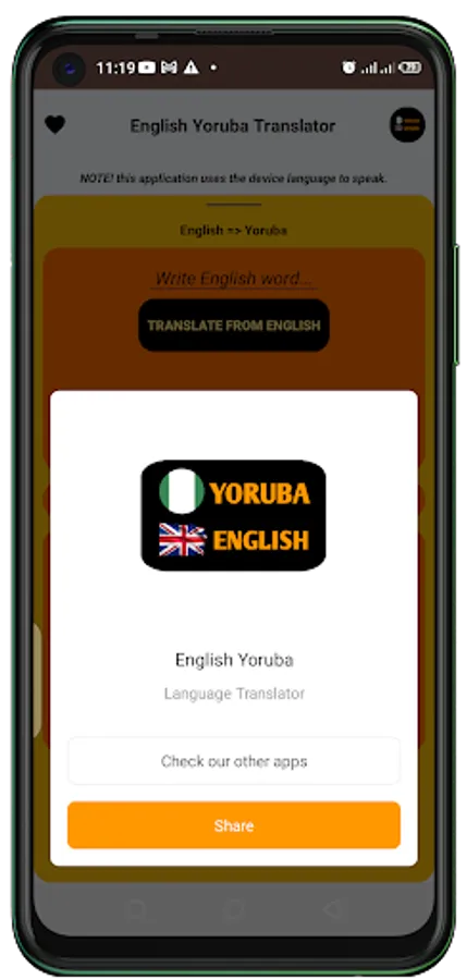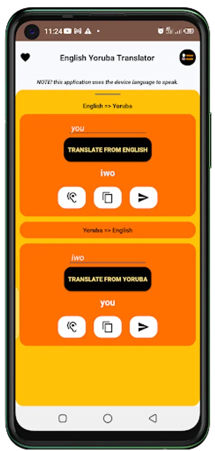 English Yoruba language translator is an application that works smoothly and helps you to translate any word, any sentence from Yoruba to English or English to Yoruba this application will really help you to learn both languages easily.