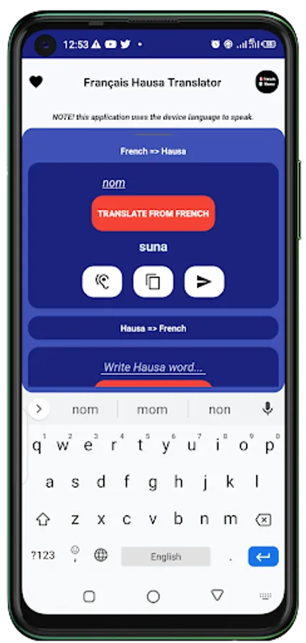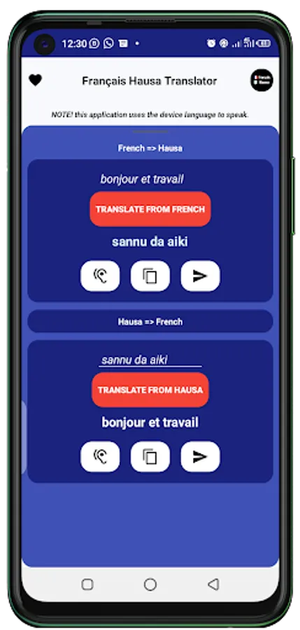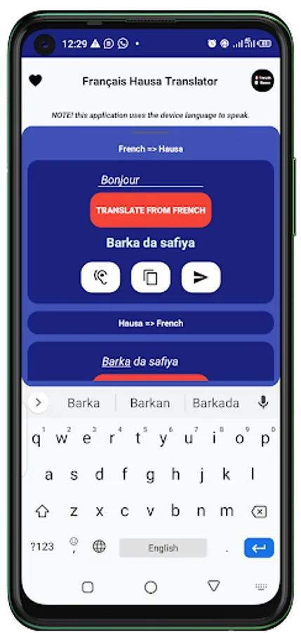 French Hausa language translator is an application that works smoothly and helps you to translate any word, any sentence from French to Hausa or Hausa to French this application will really help you to learn both languages easily.