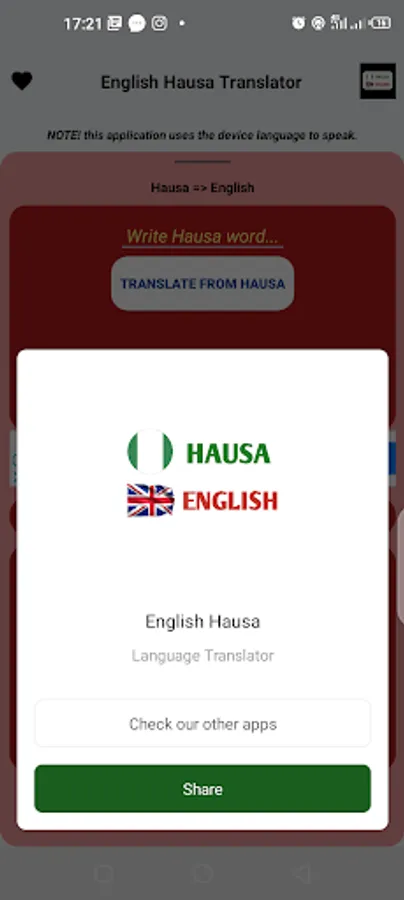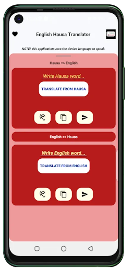 English Hausa language translator is an application that works smoothly and helps you to translate any word, any sentence from Hausa to English or English to Hausa this application will really help you to learn both languages easily.