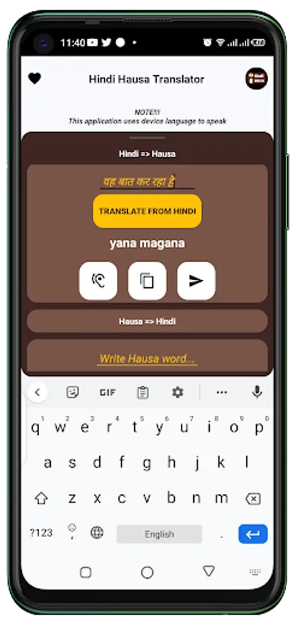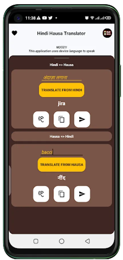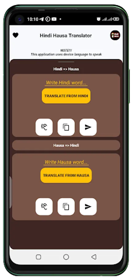 Hindi Hausa language translator is an application that works smoothly and helps you to translate any sentence from the Hindi (Indian) language to the Hausa language or the Hausa language to the Hindi language this application will really help you to learn both languages easily.