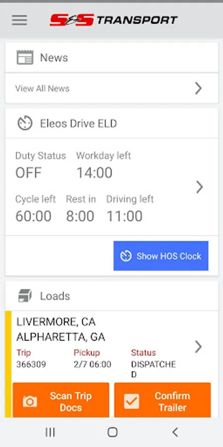 The S&S Transport mobile application was designed with you, our driving associates, in mind. You can do many things with this app: view load and stop detail, view maps, send & receive messages, scan & send documents, view news, report safety issues, and much more all anywhere you happen to be.