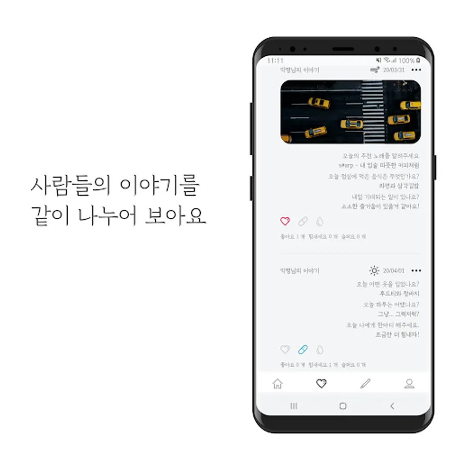 -You can select the emotions of 'Like', 'Cheer', and 'Sorrow' by looking at the diary posted by people.