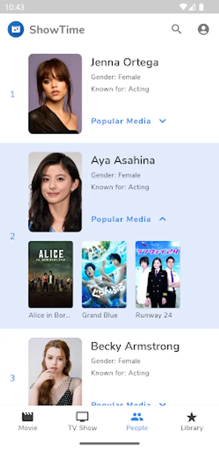 * Browse people associated with movies and shows like actor, director etc.
