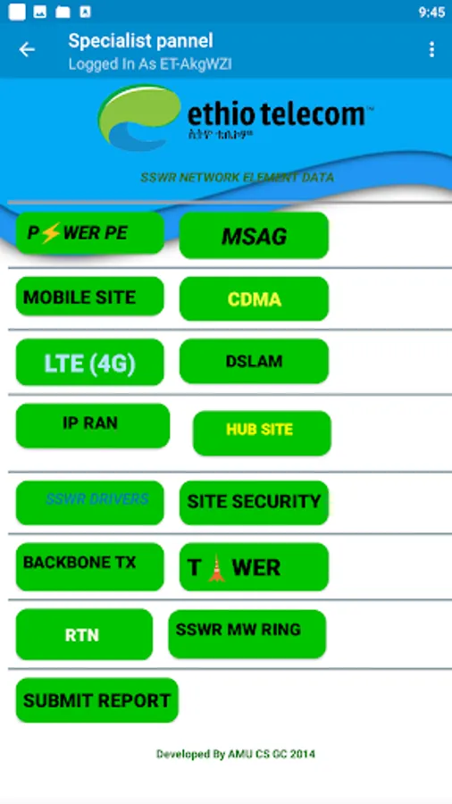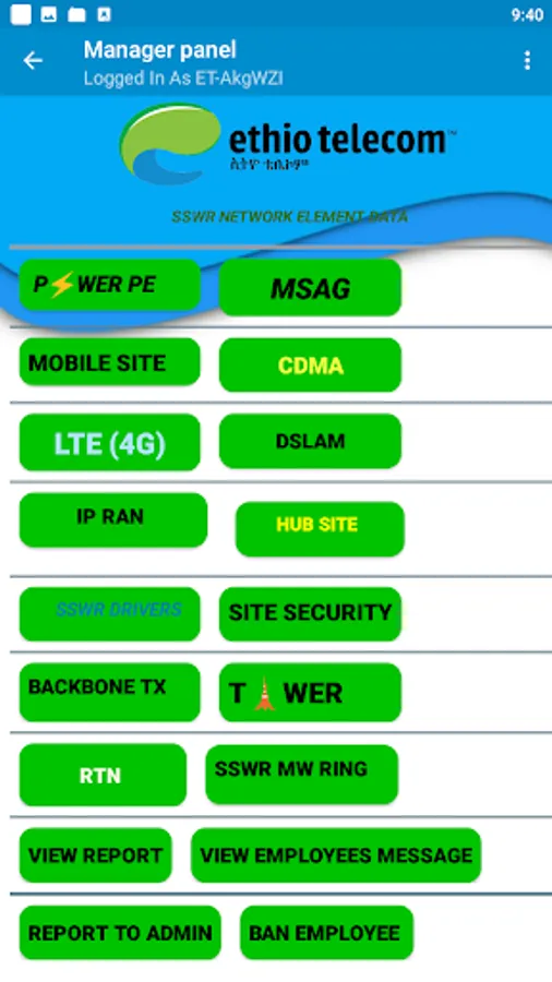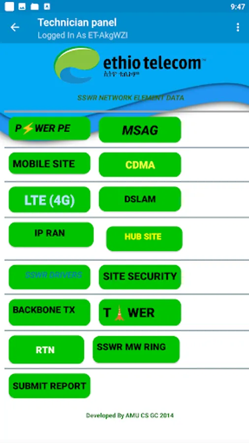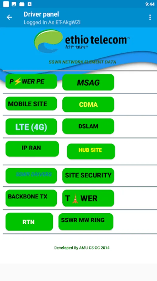 The android application includes the following features for the scope of this android application is mainly focused on digital NE site data handling for SSWR ethio telecom on different departments;-