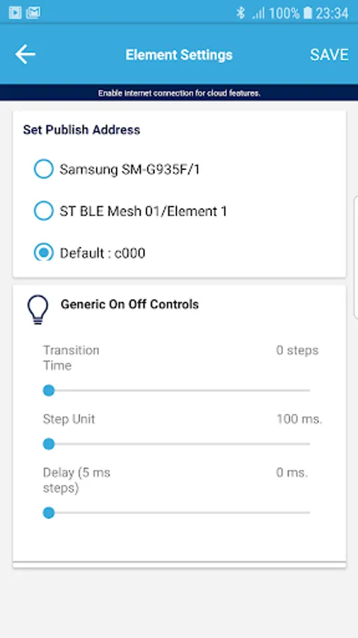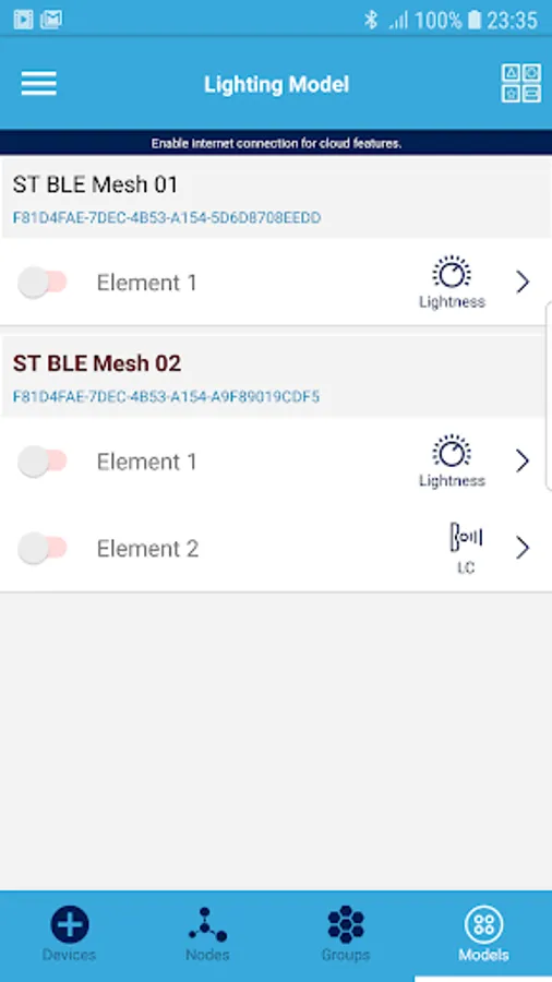 This application allows to create and control the Bluetooth Low Energy Mesh Network using the Bluetooth Low Energy Mesh Capable devices. You can use it to evaluate provisioning, un-provisioning and configuration of the devices in the network. The App can be used for configuring the subscription and publication addresses of the nodes in the Mesh Network. It can be used to evaluate the Bluetooth Low Energy Mesh network for applications like distributed control system such as smart lighting and home automation. The application is based on the underlying BlueNRG Mesh Library to communicate with the nodes running Embedded Bluetooth Low Energy Mesh networking firmware.