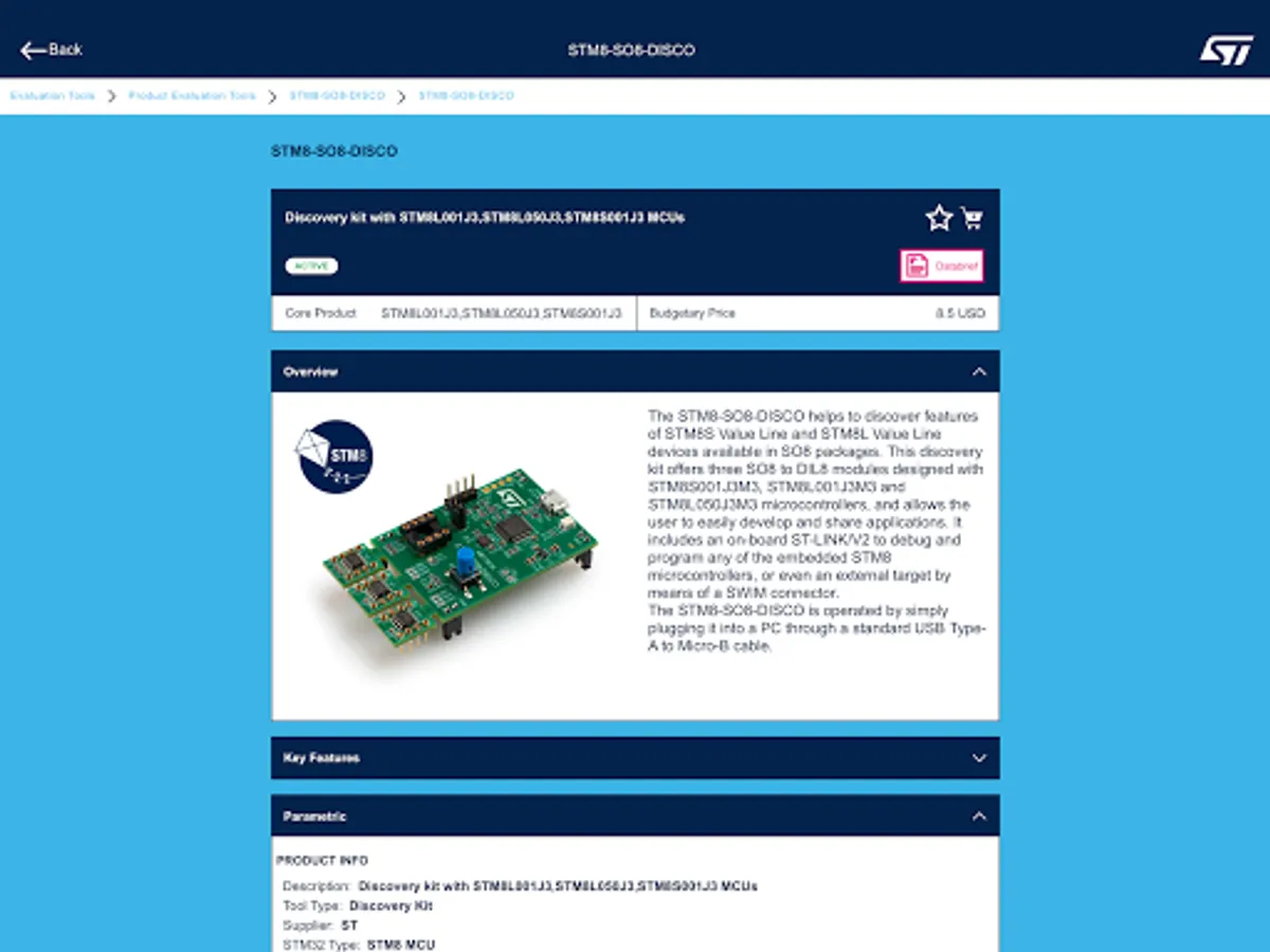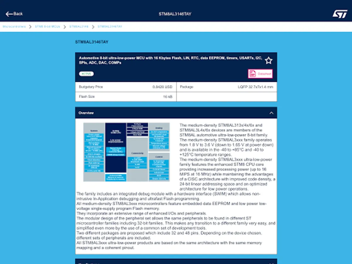 - Instant access to microcontrollers and boards key features, functional block diagrams and technical documentation