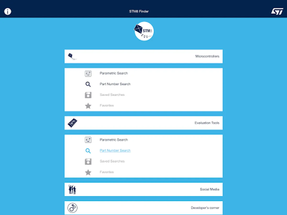 STM8 Finder will also help you to connect with the developer communities on popular social platforms such as Facebook™, YouTube™ channel, and ST Community.