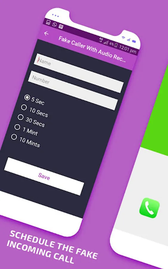 Fake Call simulator make incoming prank call from any person you choose like Fake Celebrity call,Prank Friends caller,Fake Funny incoming Call and many other voice you can record.