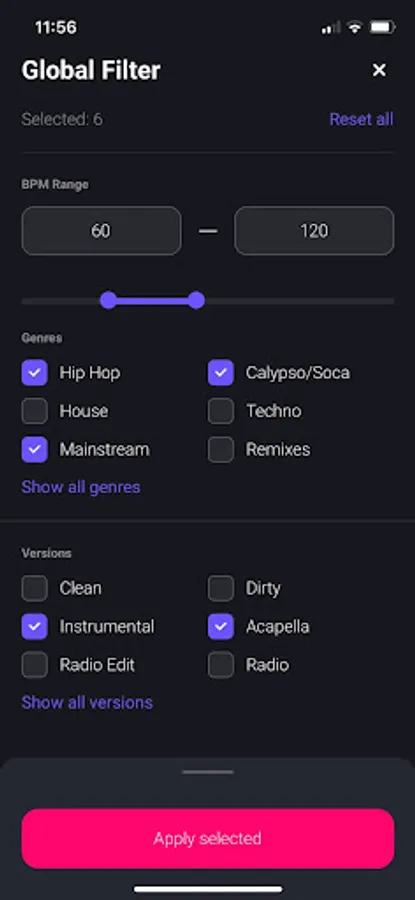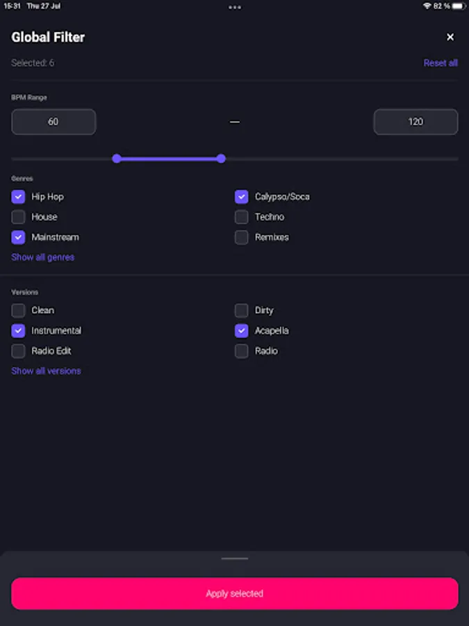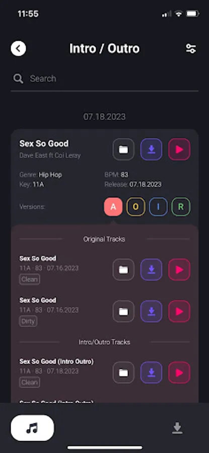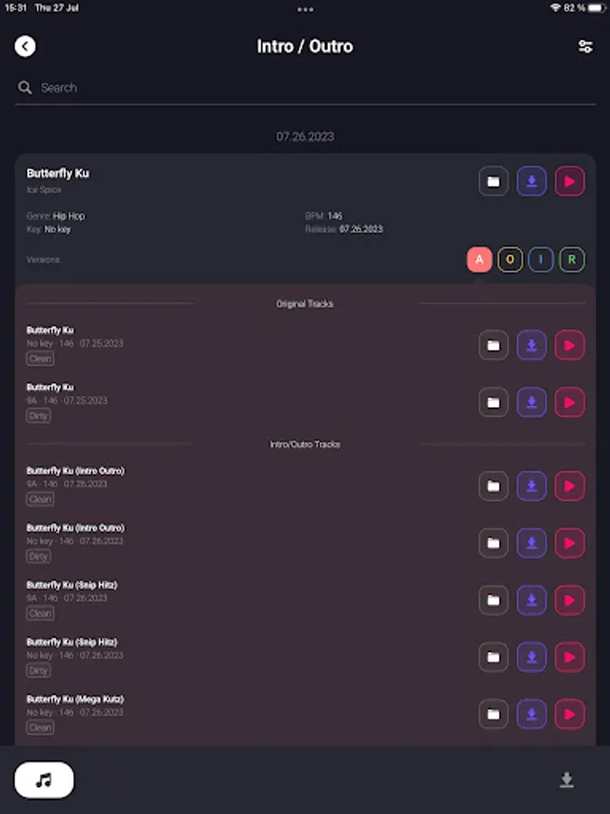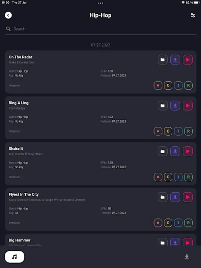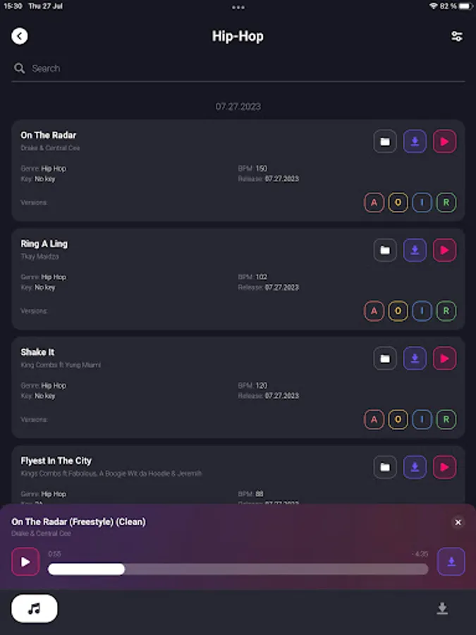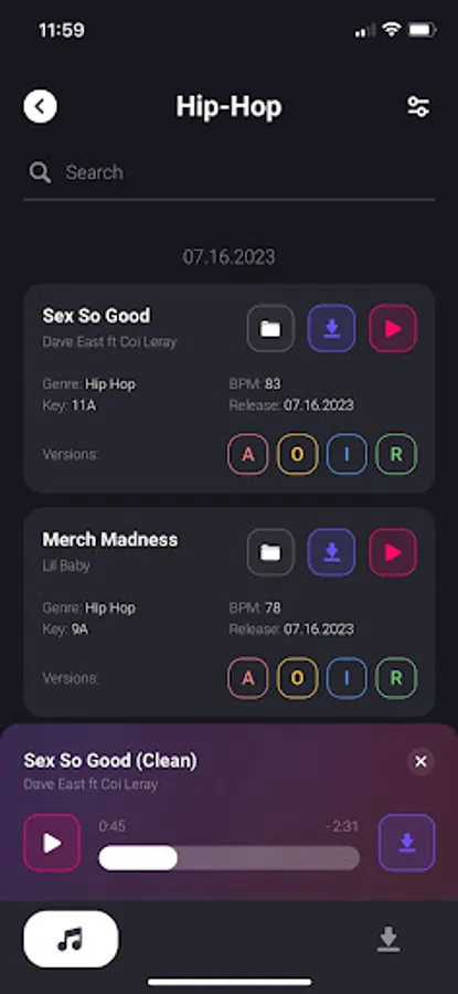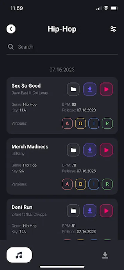 ⁃ Filter tracks by bpm, key, genre, version, or combination of for a highly customizable search.