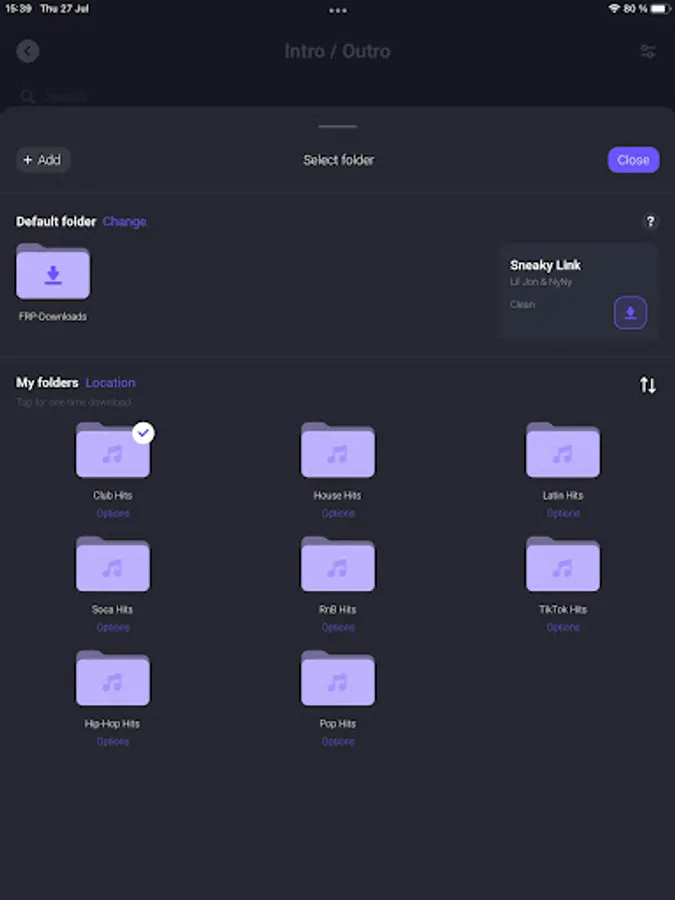 ⁃ Select any folder randomly to download a track to or set any folder as the default to download quickly while browsing