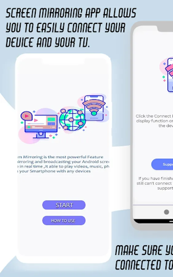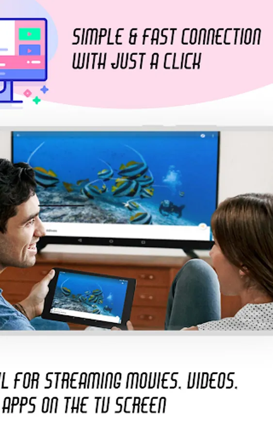 Screen Mirroring with TV is a technique, which allows you to mirror your smartphone on the TV screen & Play Videos Screen Sharing to Computer & TV.Screen Mirroring Cast Able to play videos, music, photos, etc in your Smartphone with any devices smart TV, laptop, tablet Stream mirroring to Play Movies & Videos.you can broadcasting the screen and audio of your device! You can share your Android screen live to any other device or PC on your local network, via a media player, web browser, ete