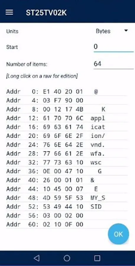 ST25 NFC Tap App is an Android application dedicated to handle the ST NFC tag ST25TA (CLOUD ST25TA02K-P), the dynamic NFC tag M24SR (M24SR Nucleo shield and M24SR Discovery boards), the Dual Interface EEPROMs of the M24LRxx family, ST25TV series NFC tags and the ST25DV series Dynamic NFC Tags.