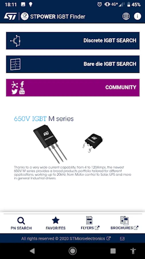 This STPOWER’s IGBT finder allows an easier and faster recollect of the most important information about any IGBT in ST’s portfolio.