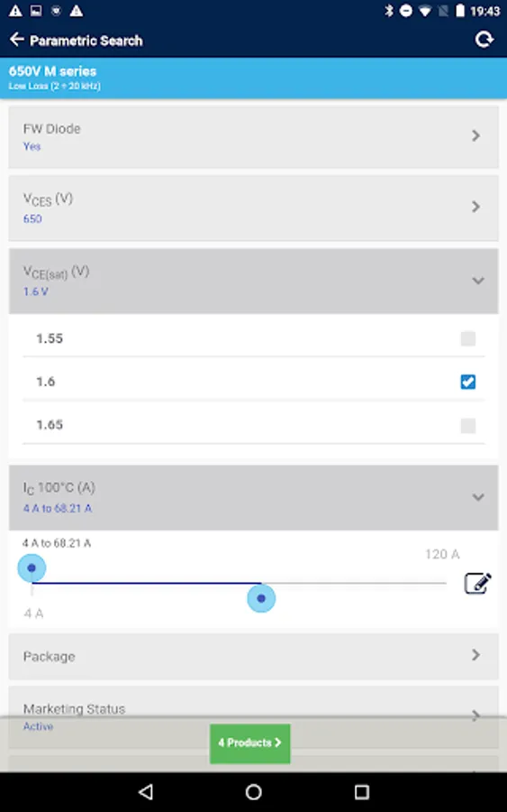 • Detailed parametric search to permit a very fine IGBT search