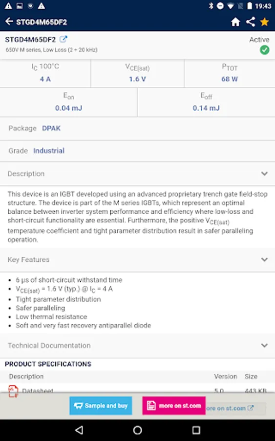 • Fast link to datasheet and technical literature linked to a particular part number