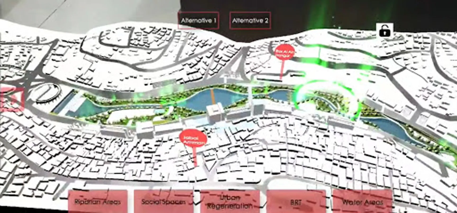 The application was made for research purposes to provide information on possible solutions for Amman's Seil and allow people to experience a greener vision of the city of Amman using an interactive Augmented Reality model of the project and surrounding urban context.