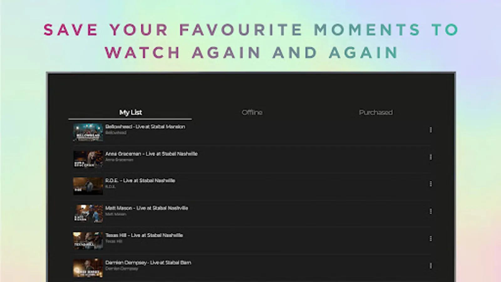 Personalized Library - save your favourite moments to watch over and over