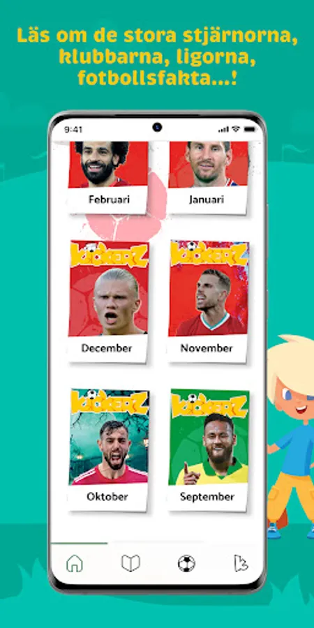 Every month, the child receives a new interactive magazine, and they also have access to previous magazines. Read about the big stars, clubs, leagues, football facts.