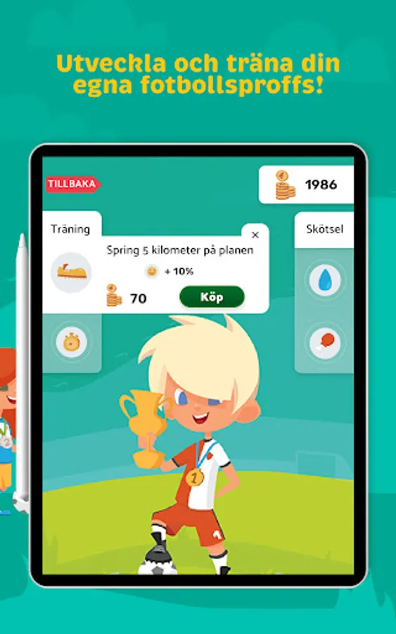 With the points, your child can develop and take care of their own football player!