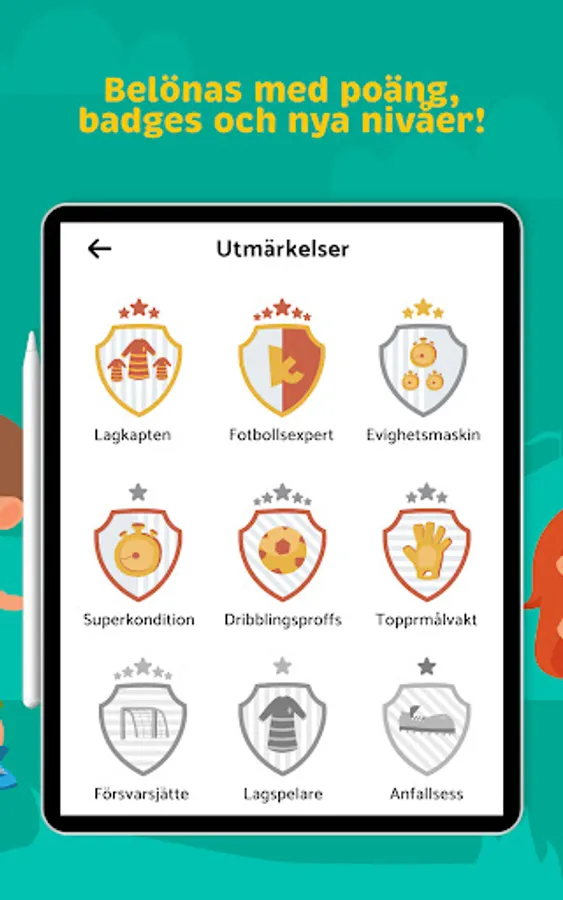 The Kickerz app provides exciting reading as well as educational and fun games! Read about the big stars, clubs, leagues, football facts…! Your child is rewarded with points, badges and new levels! With the points, your child can develop and train their own football player and challenge friends!