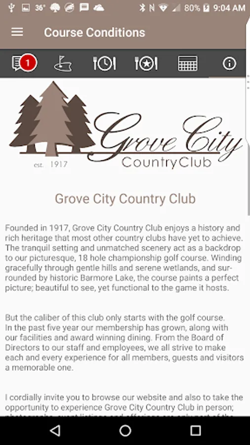 This app provides all the club information for the members of Grove City Country Club. Download the Grove City Country Club app to get notifications of events, hot off the presses messages and course conditions. You choose which notifications you receive! All the information you need right there on your device.