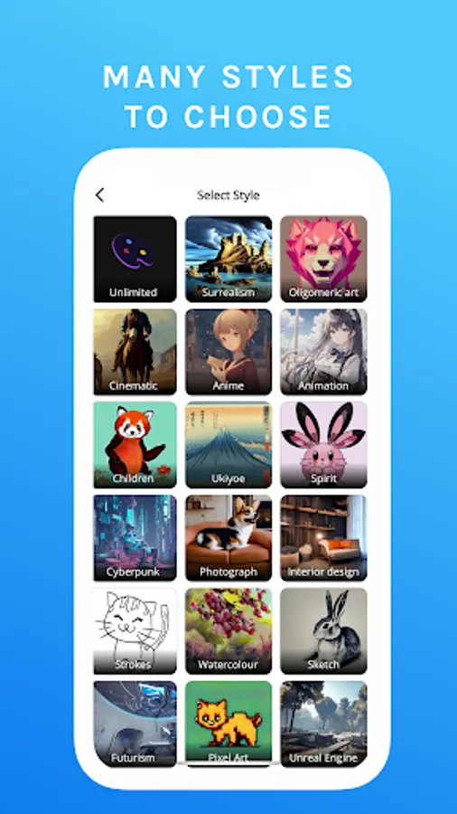 Our application consistently introduces new styles to explore, offering limitless possibilities for unveiling fresh interpretations of your thoughts and artistic aspirations. With our AI-art generator, you'll never run out of novel ideas to investigate and materialize.