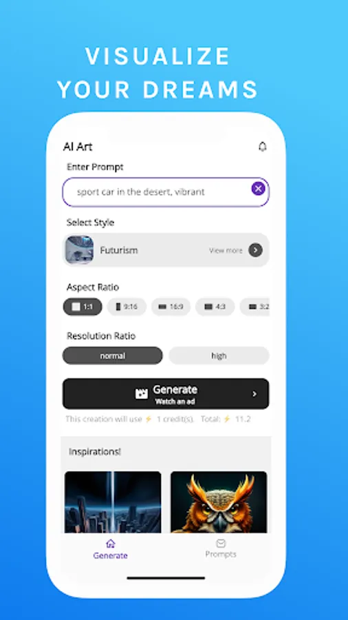 Should you wish to modify your artwork to better align with your initial concept or merely experiment with various styles, our AI-art generator grants you the capability to do so. With Dreamer.AI, you can perfect your artwork to accurately embody your creative vision.