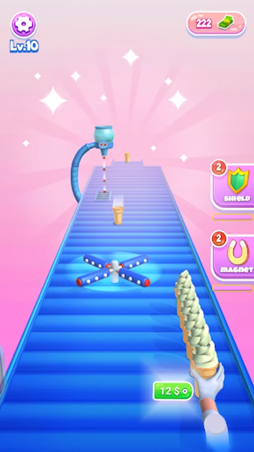 Ice cream stack is a hyper-casual game where you are provided with cones that are running on the conveyor belt and you have to top it up with the cream or gelato and cherries. But make sure there are some cutters and other hurdles where you have to be careful. . Make the best-frozen dessert for your customer and see your level at the end.