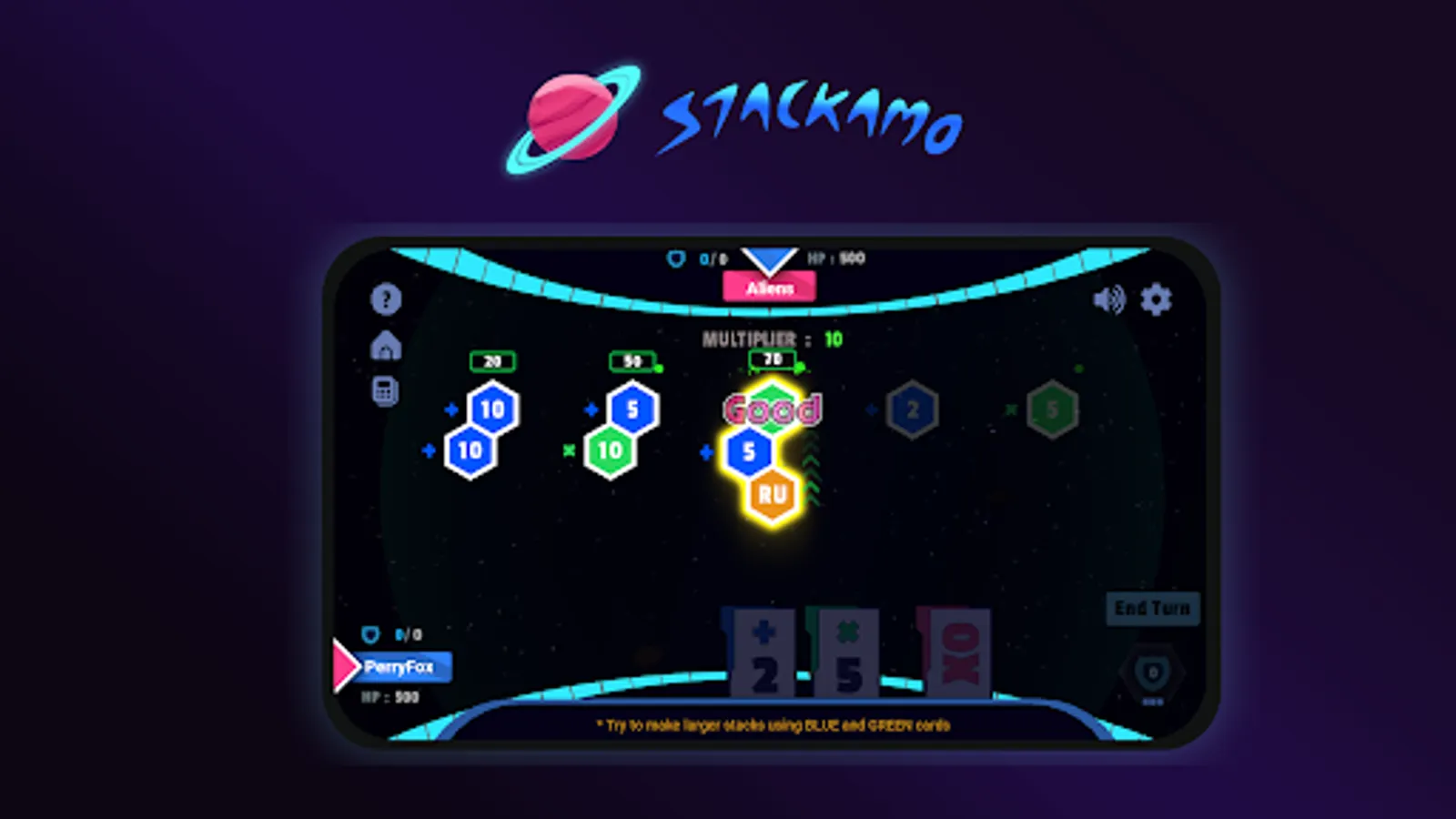 Stackamo is a fun, educational, and strategic game that combines addition, multiplication, and cool special actions to create a game for your math brain. A huge improvement over other math games that focus on route mechanics with no strategy or novelty to keep players engaged.