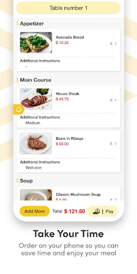 Save time in the restaurant by ordering and paying at your convenience. No more waiting on busy days. If you need help at any step of the process, use the “call waiter” feature to get answers to your questions or get recommendations.