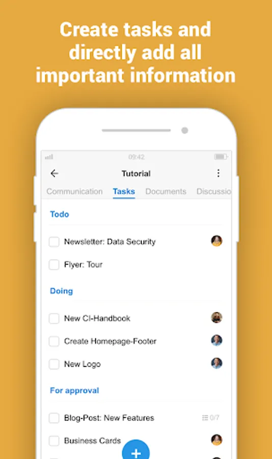 ✔ Each workspace offers the most important features for your team's daily work: group chats, discussions, documents, task and file management, and calendars