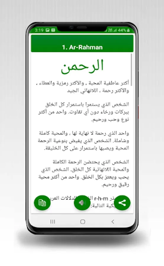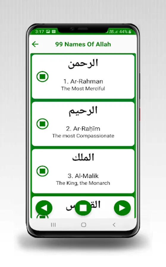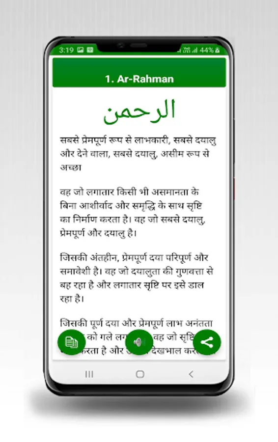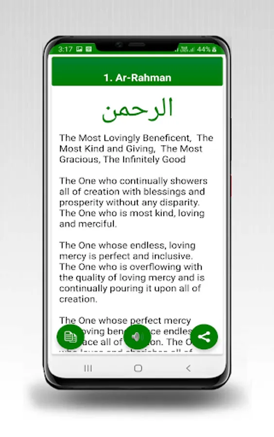 - For each names of Allah, a short English translation of Quran-meaning is quoted. Detailed meaning of allah names also provided within app.