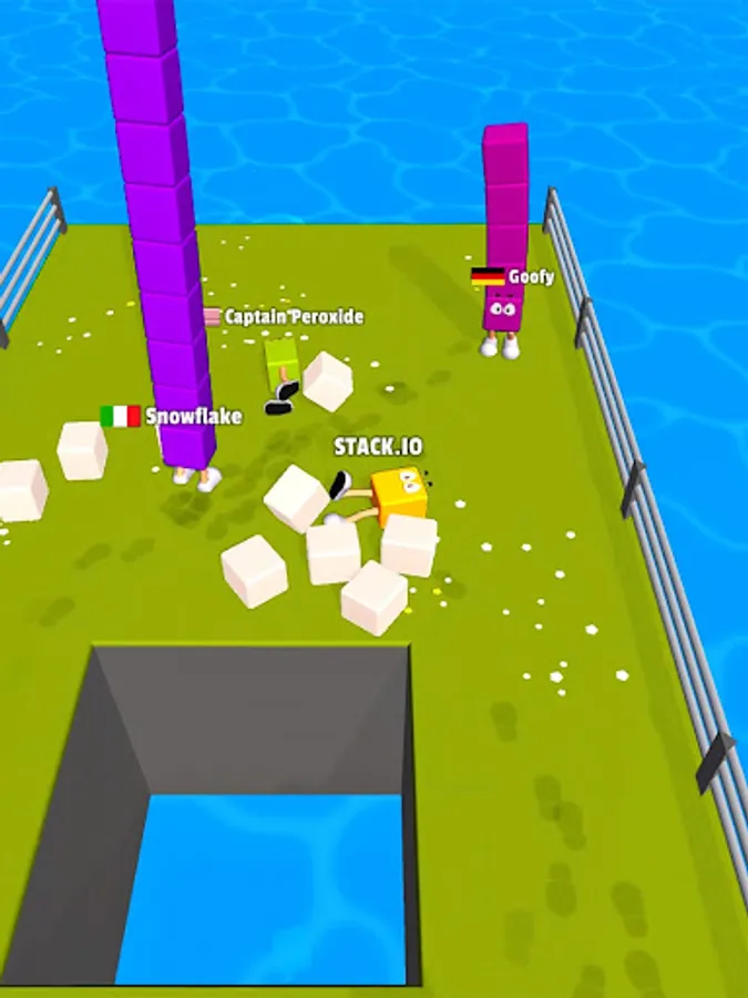 Kick opponents, knock down their color stacks, collect the cubes and grow your stack colors tower!