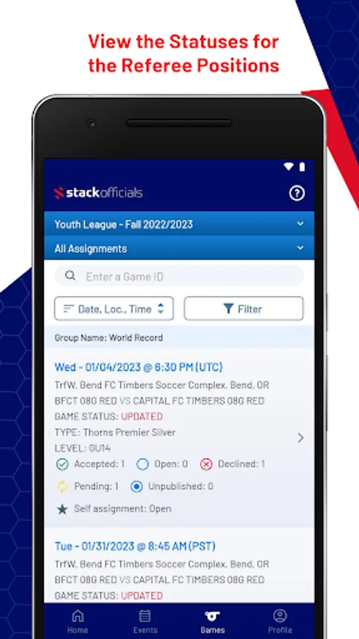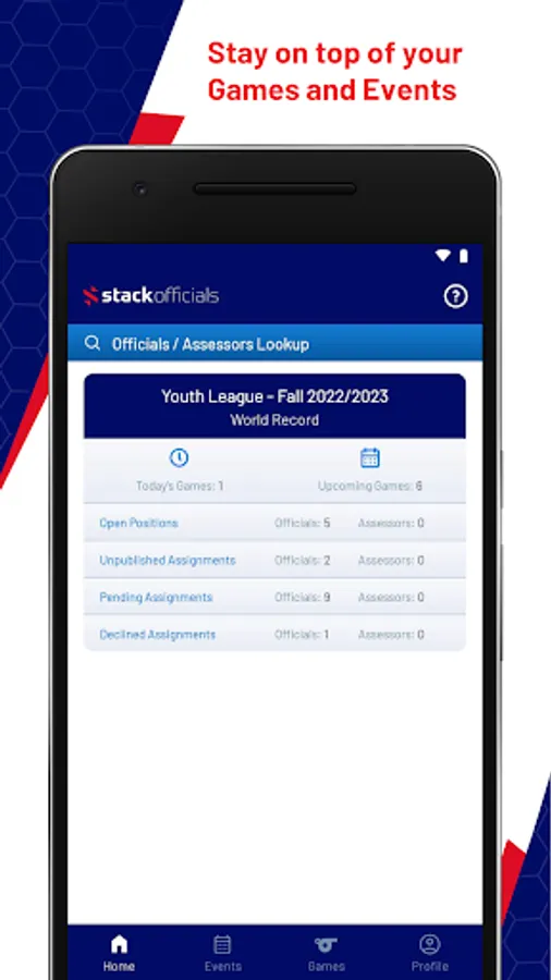 *Stack Officials mobile app is an extension of our Stack Officials platform. To gain access to this mobile app, you must be an assignor or admin assigned to an event on the platform.
