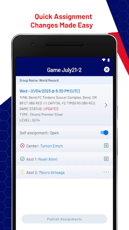 Officials Assignment Updates: An assignor can assign and remove officials from a game and accept game assignments on the officials behalf