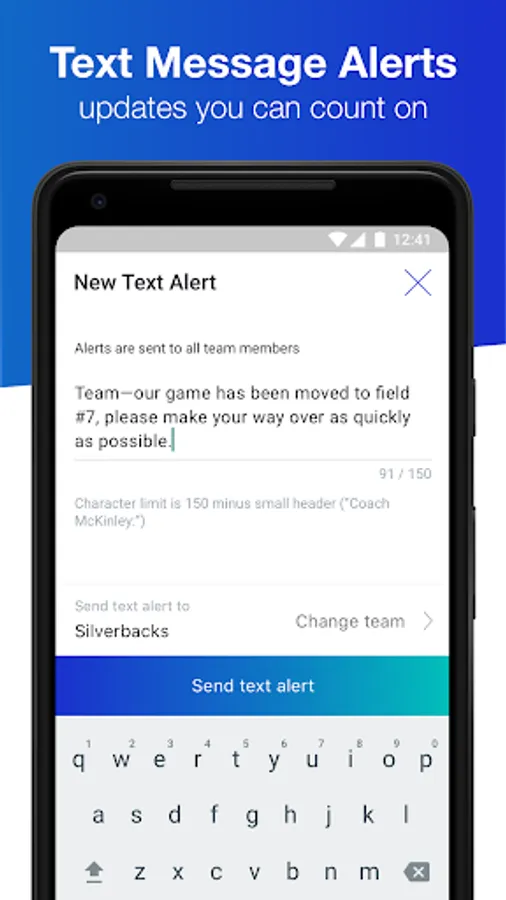 Have the world of team management at your fingertips, whether it's keeping your game schedule up to date, sending text alerts to parents about a cancelled practice, or anything else you need to keep your focus on the field.