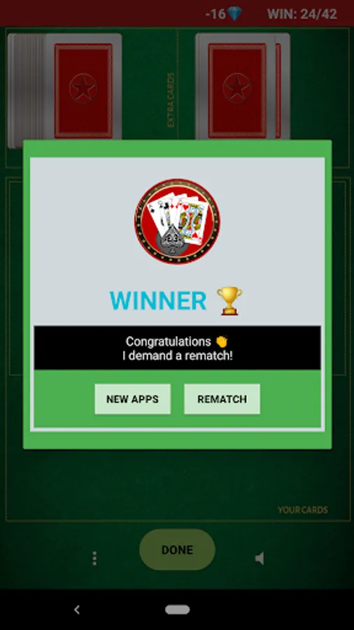 NB: If the Joker is the topmost card, it's impossible to win a game. Even if you play your last card, the game still continues and you are forced to draw a card.
