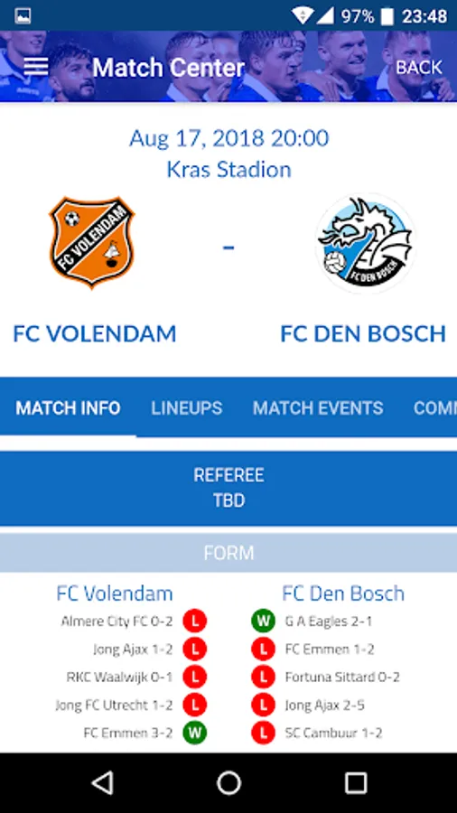 Are you at home or away? Track statistics, goals, players and game info with FC Den Bosch Live Twitter Feed the App.