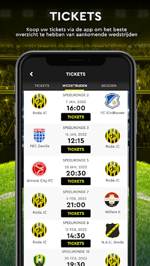 Follow the Roda JC matches, news and stats in the stadium, at home and everywhere!