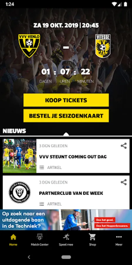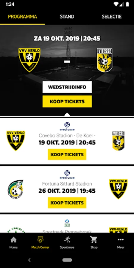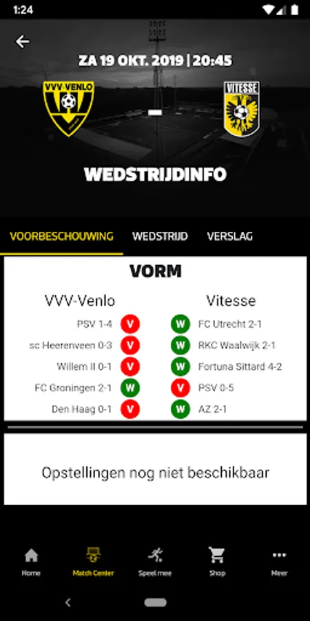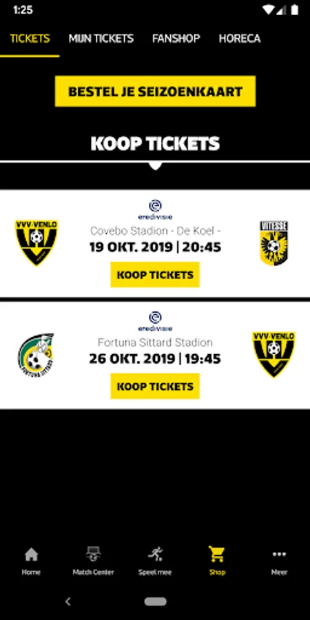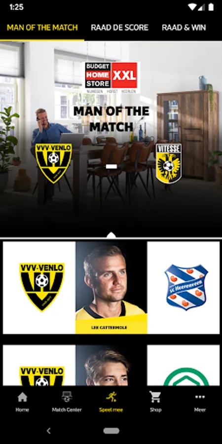 Log in with your My VVV data to predict the outcome and choose the Man of the Match. Or simply order tickets or fan articles in the app.