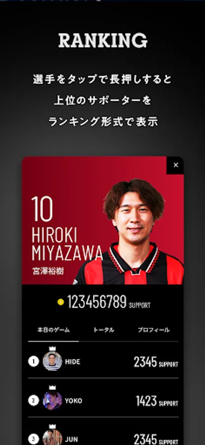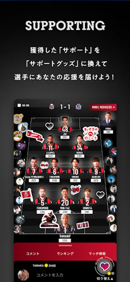 If you log in to the app on the day of the match, you will get the in-service currency "Support" for free! Get more bonus support by checking in at the stadium!