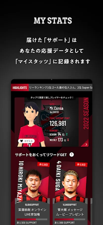 "STADIUM CONSADOLE" is a supporters app that brings supporters closer to Hokkaido Consadole Sapporo.