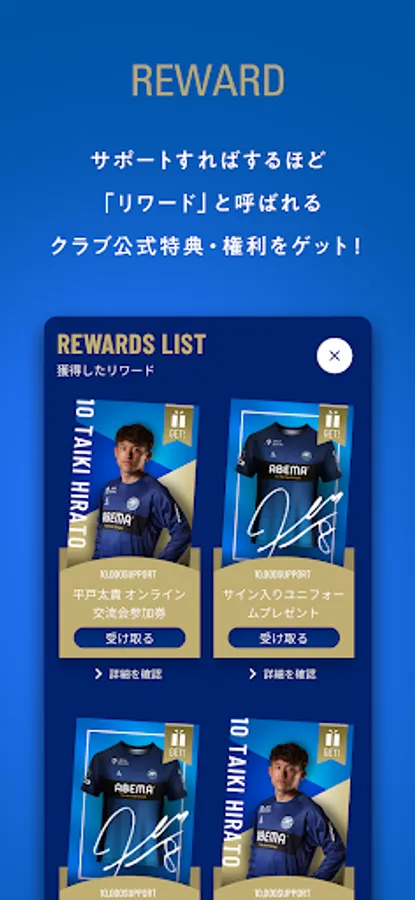 The more you support, the more official club benefits and rights you can get called "Rewards".