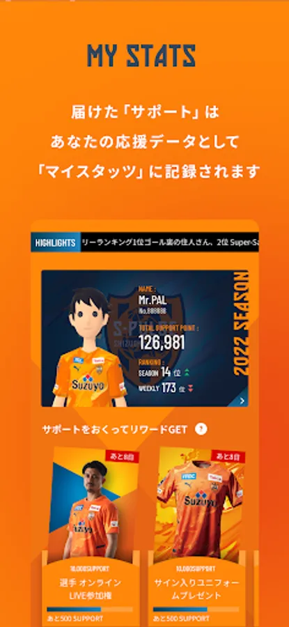 "S-PULSE STADIUM" is a supporters app that brings supporters closer to Shimizu S-Pulse.