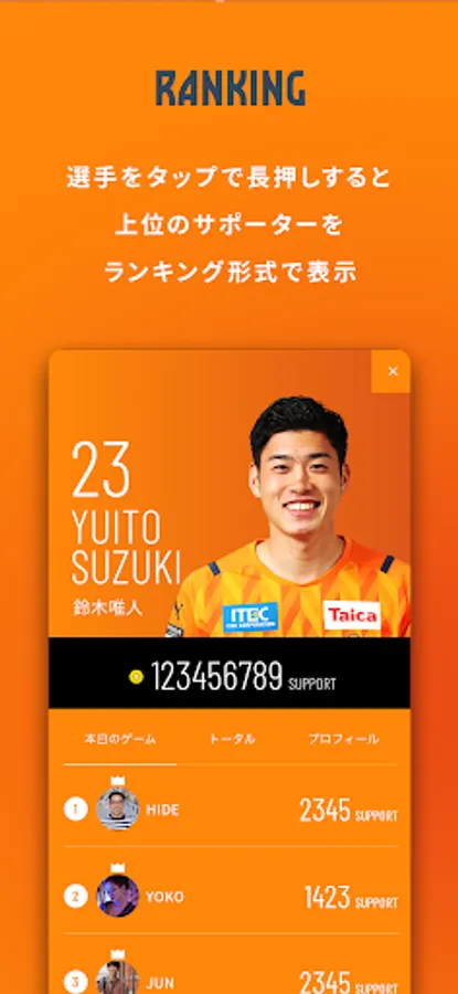 If you log in to the app on the day of the match, you will get the in-service currency "Support" for free! Get more bonus support by checking in at the stadium!