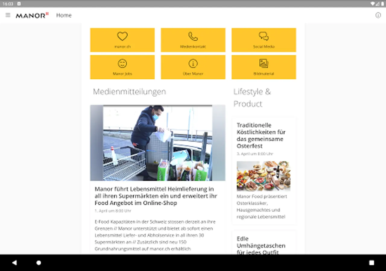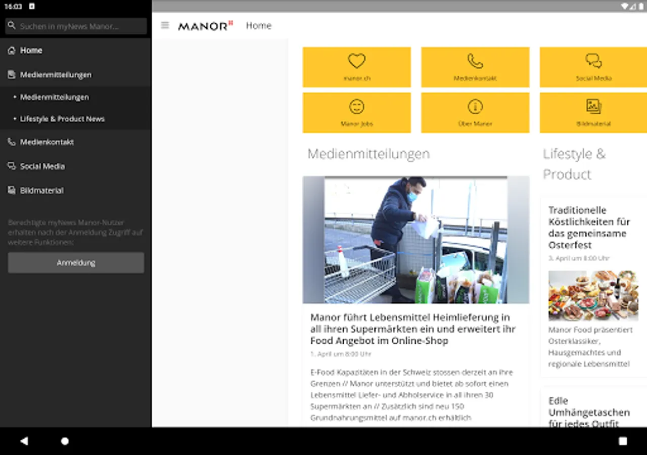 myNews Manor is a centralised application intended for everybody interested in Manor SA. It is designed to be a lively, modern communication platform featuring the latest information about the company and internal news, whilst also offering a forum for exchange, in particular, a noticeboard for displaying adverts.