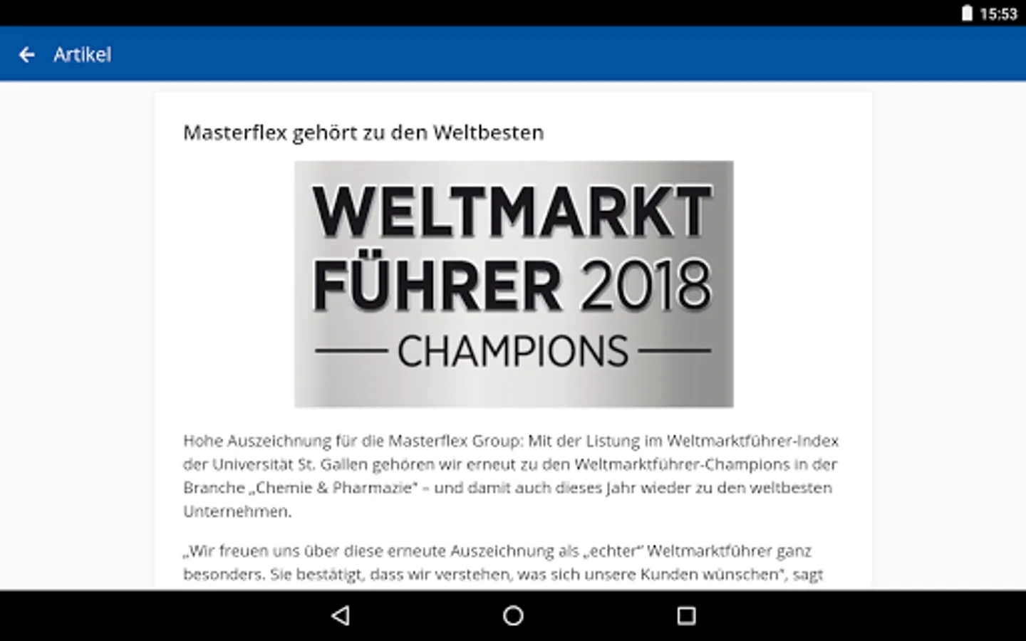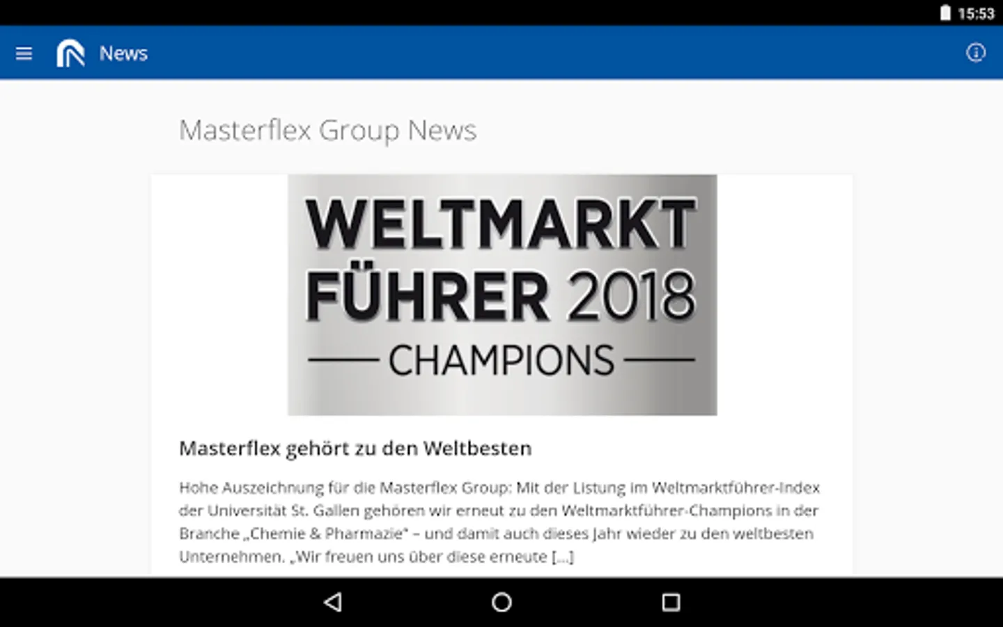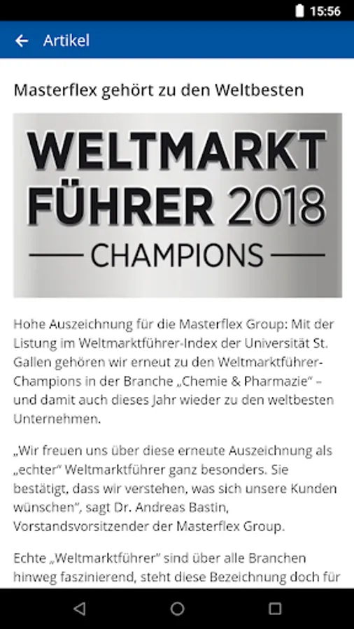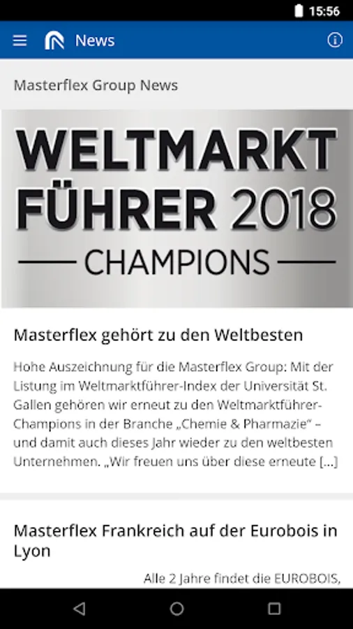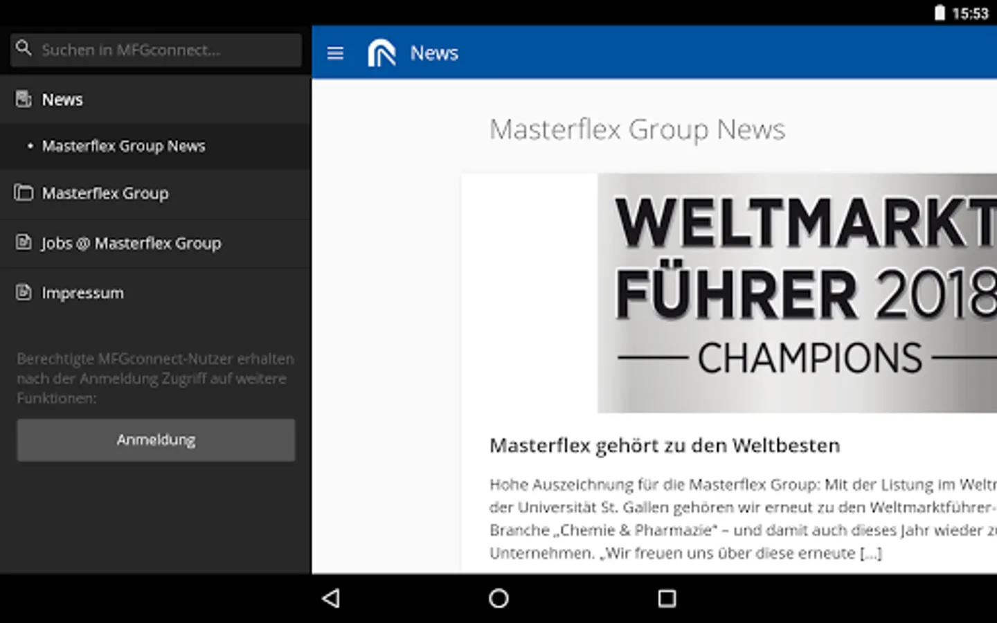 MFGconnect mainly informed employees as well as partners and customers of the Masterflex Group fully aware of the current events of the Group. With Notifications are thus always and everywhere up to date.
