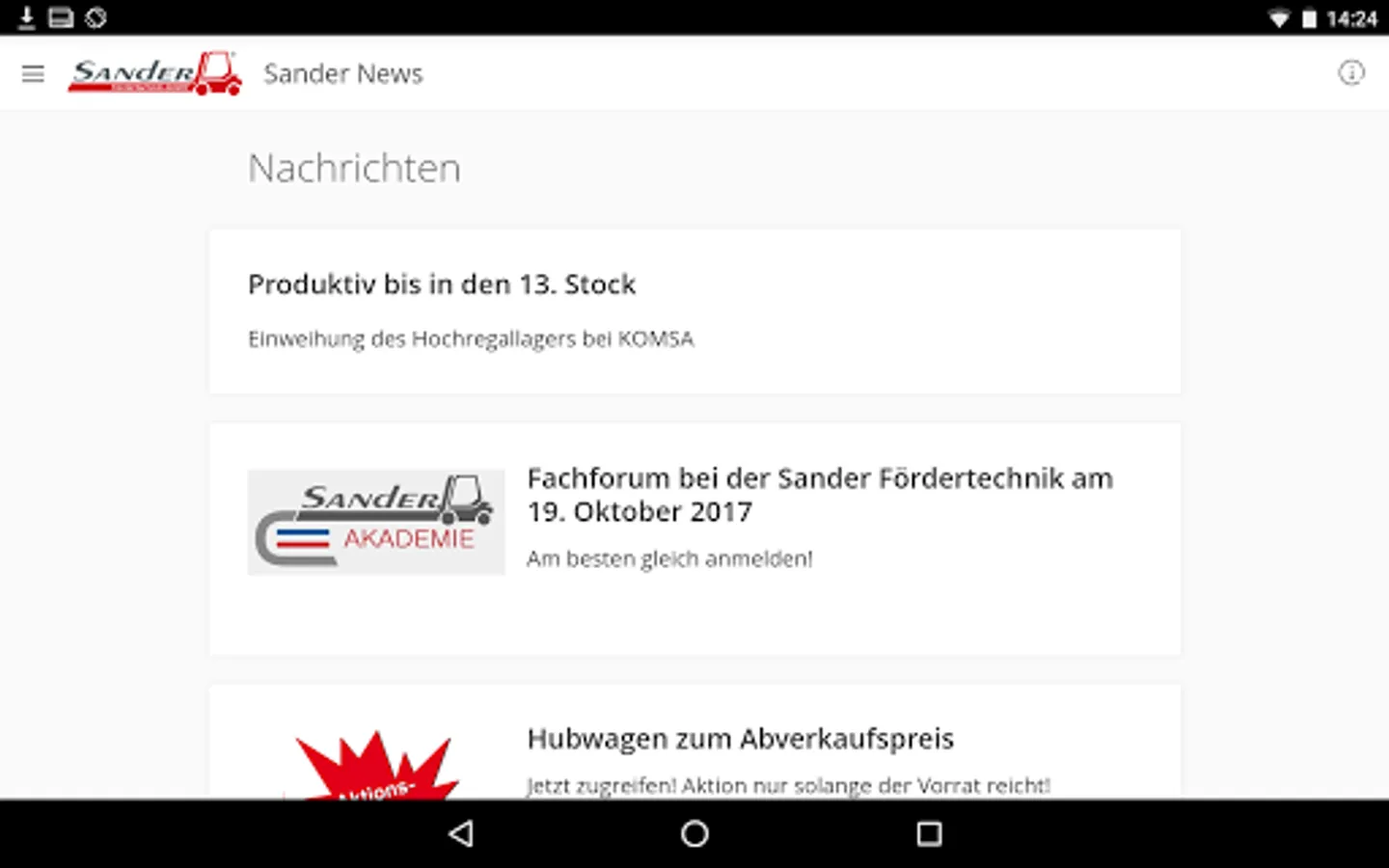 This app provides the latest information and news about the company Sander Fördertechnik GmbH. It contains the latest news from the company. Prospects, customers and employees thus always and everywhere remain up to date. On the private messaging feature has the ability to quickly and easily get in touch and stay.